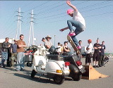 On March 23rd, 2003, Lava Records filmed a music video for one of their artists, a band called "Authority Zero". They wanted some Mod scooters and scooterists for filming. As these two things are few and far between in the scooter scene these days, with a little help from Wardrobe, Eric DeJong (who came out from Riverside with his Mod beauty), and the rest of our scooters, they kinda got what they wanted. Thanks to Eric for providing some of the supplemental pics for this page. Special thanks goes out to Mike and Krisha Martinez, for also coming out, being big sports and actually becoming the mini-stars of the vid!!! Can't wait to see Mike's Vespa wheelies featured in the video!! By the way, the name of the song they filmed the video for was "Over Seasons" from their CD "A Passage in Time"